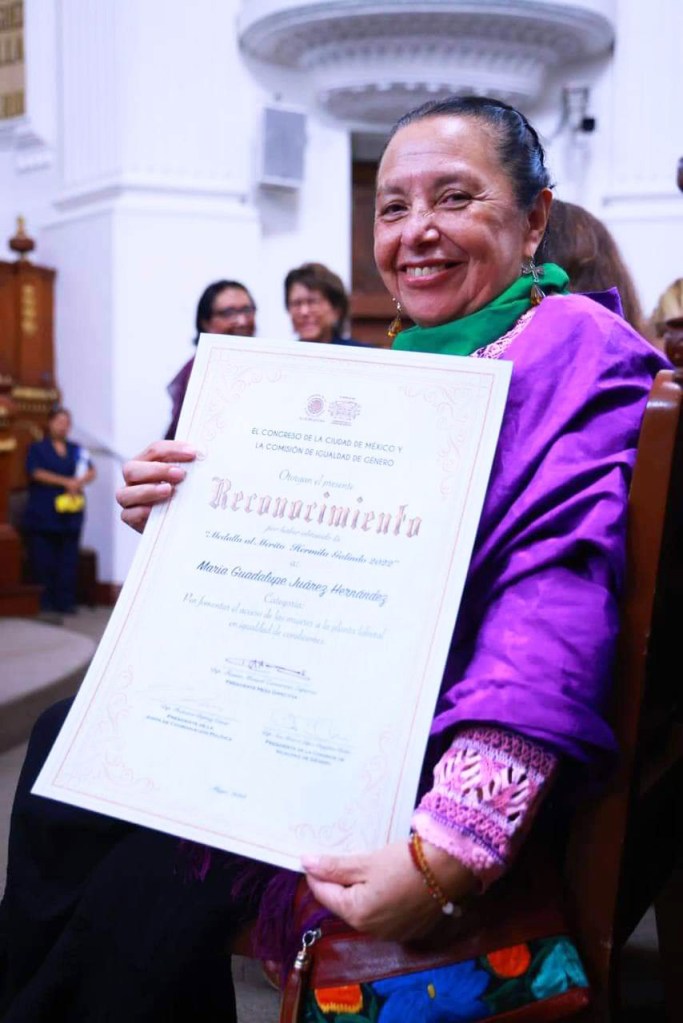 El Congreso de la Ciudad de México otorgó, el pasado 18 de mayo, la Medalla al Mérito Hermila Galindo, en su edición 2022, a la Maestra María Guadalupe Juárez Hernández, de la colectiva Mujeres Morena República, por fomentar el acceso a las mujeres en la planta laboral en igualdad de condiciones.