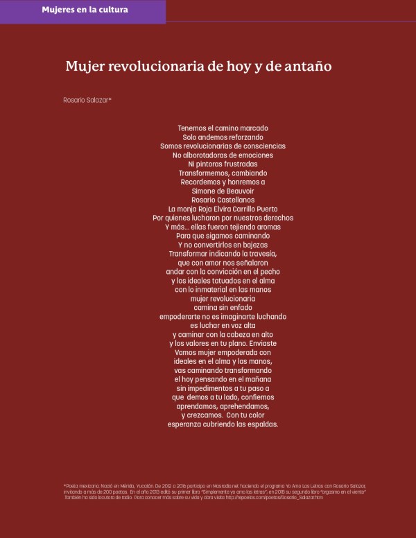 Frida López Rodríguez* No recuerdo cuando llegué.Necedad del México pasadoHizo que naciera donde brotótanta agua como tierra.Diluvio fueron las horas de mi madreSuplicó llevara el cielo adentroY de nubes cargadas heredé la espalda del sureste El rezo a fondohizo de los primeros díasUn arrullo tornasolado.Rincón de manos anhelantes,piedra hecha de fe sureña,iglesia de San Isidro... Leer más →